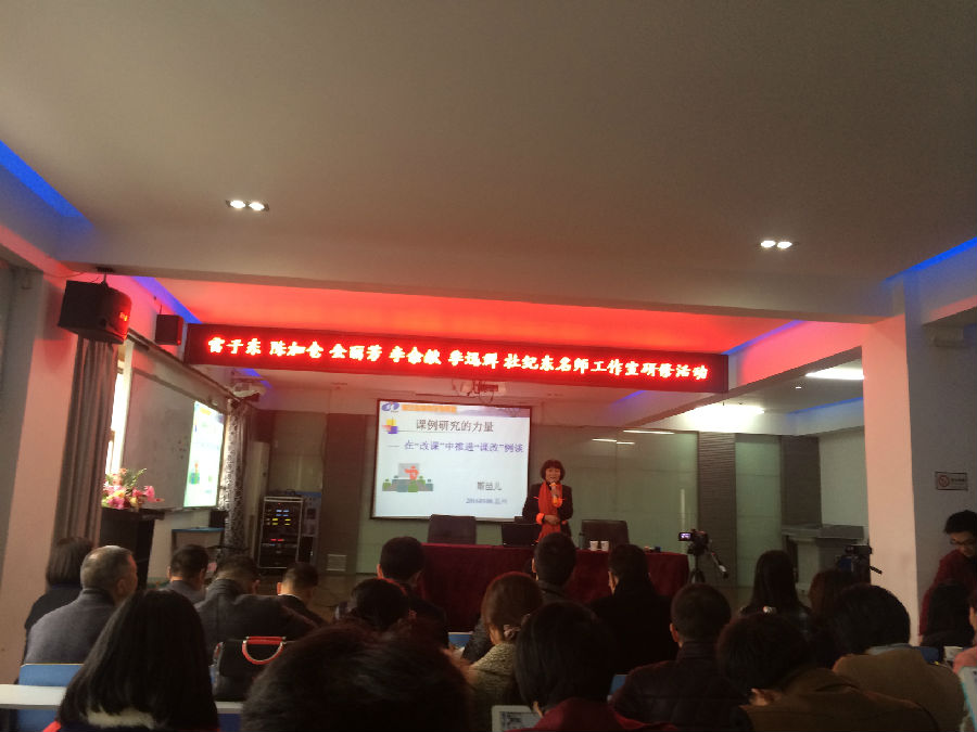 1月8日,温州市小学数学雷子东、陈加仓、金丽芳、李余献、季迅群、杜纪东名师工作室联合邀请全国著名麻辣评课大师、浙江省小学数学教研员斯苗儿老师来温讲学。六个工作室成员与从四面八方慕名而来的老师早早地来到会场,瓯海实验小学南瓯校区四楼阶梯教室座无虚席。