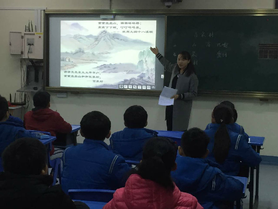 胡晓慧老师带来了课例《百泉村》。课堂上,胡老师引导学生速读课文,捕捉文章重点信息,运用摘词法、归纳法提炼文本重点信息。运用想象式、引导式阅读,感受金波语言的淳朴、淡雅、真诚,并进行积累。通过“想百泉——读百泉——背百泉——仿百泉”的解读方式,引导孩子们建构自己心中的“百泉村”。