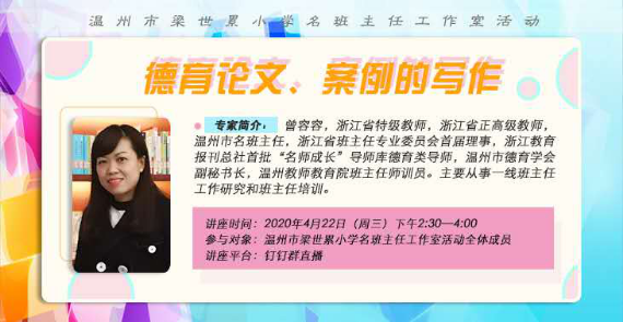 此次活动邀请了浙江省特级教师曾蓉蓉做专业引领,工作室主持人梁世累老师主持线上研修,全体学员参与学习。