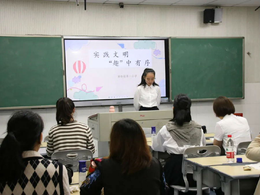 温州市瓯海区泽雅镇第一小学林夏晨老师分享了磨课经历《实践文明,“趣”中有“序”》,林老师从课堂入手,逐步拓展到学校常规“文明有序”,再结合国家的“文明有序”,层层深入,让人深思。