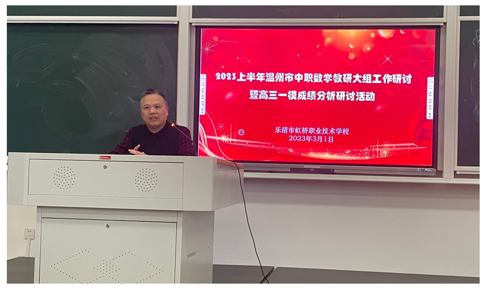冬去春来浅草黄,沿坡直上柳稍长。2023年3月1日,温州市中职数学教研大组工作研讨暨高三一模成绩分析研讨活动在虹桥职业技术学校举行,借此机会李来国名师工作室也同期开展第15次活动。本次活动立足于中职一模成绩分析以及对“面向人人文化素养”比赛试卷分析,为后续对教学研究指明了方向。市中职数学教研员叶思义导师、工作室主持人李来国、来自全市中职数学教师以及工作室成员们参加了活动。