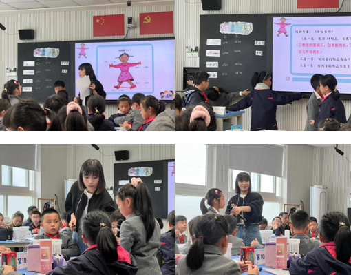 “那我们的身上还有那些尺子呢?”孩子们踊跃积极的发表着自己的想法,一庹、一步、一脚,这些都是我们身上的尺子,王老师在孩子们分享智慧的同时,也不断的规范着孩子们对于身体尺的认知,最后引领孩子带着“身体上的尺子”对教室内的物品展开了合作测量。让孩子利用已有的测量结果估计相近物品的长度,逐步给孩子们渗透估计的理念,也将身体拓展到用其他物品作为尺子(参照物)进行测量。将理论运用到实践中,将合作贯彻到活动里,孩子们深刻的感受到数学与生活的密切联系,提升孩子们分析问题解决问题的能力。