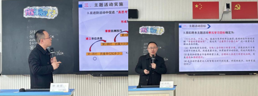 观摩课结束后,市中坚、县名师钟政营老师做了《真情境 真体验 真思考——以“曹冲称象的故事”数学主题活动为例》的观点报告。钟老师团队根据数学新课标、学生的学科起点确定了本主题活动的单元学习目标。主题活动设计围绕数学核心素养量感、推理意识和创新意识,确定大概念质量单位的累加,即分与合。确定活动目标,设计任务环节,在多元场景中凸显“真情境”、在多维操作中获得“真体验”、在进阶活动中促进“真思考”,推进主题活动的实施。让学生具身学习,在教学中设计具身交互和感知体验,让学生以自然的身心状态参与到学习活动中,放大学生在操作过程中的感官体验,实现学习过程中多自由度、多感官通道的融合。