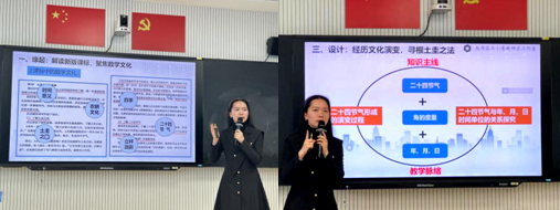 紧接着,来自龙湾区实验小学的郑密迦老师,从四个方面“缘起、思路、设计、收获”做了《依托数学文化,培育核心素养——以“二十四节气”为例》的观点报告。分享了“探寻历法文化”的主题活动框架,从文化理解到文化认同,再到文化践行,是对数学文化的理解与传承。从感受文明到感应文明,再到感悟文明,帮助学生形成文明价值观。吴老师所在团队设计此次数学活动缘起于解读新版课标、聚焦数学文化,回答了“什么是数学文化?”“课标中的数学文化”以及“学生期待的数学文化”的问题。以依托节气文化、实现文化育人的思路,开展以“演变”为主线的数学文化主题学习、以“活动”为载体的数学核心素养学习、以“融合”为手段的跨学科综合性学习。在此思路上做了经历文化演变,寻根土圭之法的设计,形成明晰的知识主线和教学脉络,完善了教学资源,提高了教学品质。