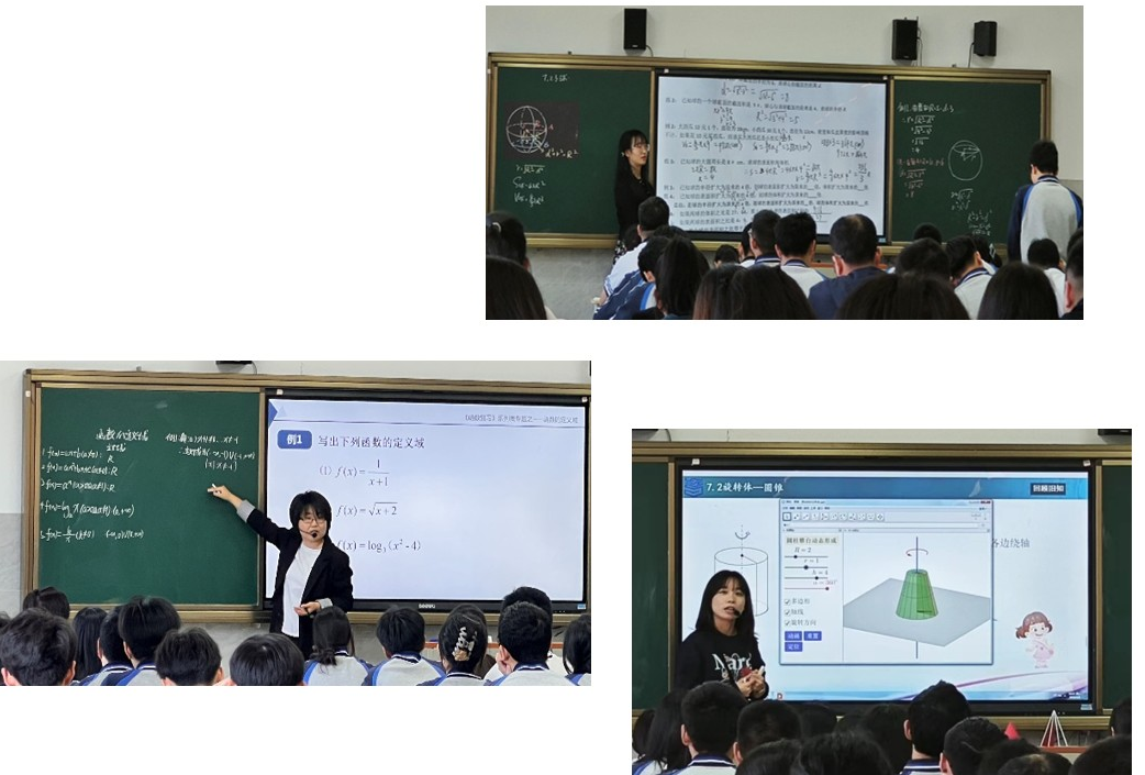 上午,由王焰老师、工作室成员柯李瑞老师、陈慧慧老师进行公开课展示。王焰老师从生活实际出发,引出课题《球》,通过直线与圆的类比教学介绍球的相关知识,便于学生理解。柯李瑞老师开展系列微专题复习课:《函数复习——函数的定义域》,借助函数图像先带领学生复习常见简单函数的定义域,接着在变形的过程中,逐步让学生感悟复杂到简单的求解过程,也就是求解复杂函数的定义域都可以归结到简单函数定义域的寻找上,整堂课注重知识的生成过程。陈慧慧老师在进行《圆锥》的教学中,利用信息化工具GGB和实物模型进行圆锥概念和表面积公式教学,使得抽象的问题具象化,有利于学生知识体系的搭建,随后又采用实验教学法进行圆锥体积公式的教学,给听课师生留下深刻的印象。三位老师的授课风格风趣幽默,各有特色,课堂气氛非常活跃。