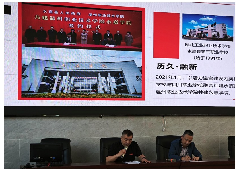 在下午的活动中,浙江省优秀教师、永嘉职业教育中心王培忠校长带来《品质建设,促学校高质量发展》的经验交流。王校长从学校沿革、办学理念、特色融合、持续发展、品牌项目五个方面分享了学校为打造中高职一体化特色与品牌的历程。