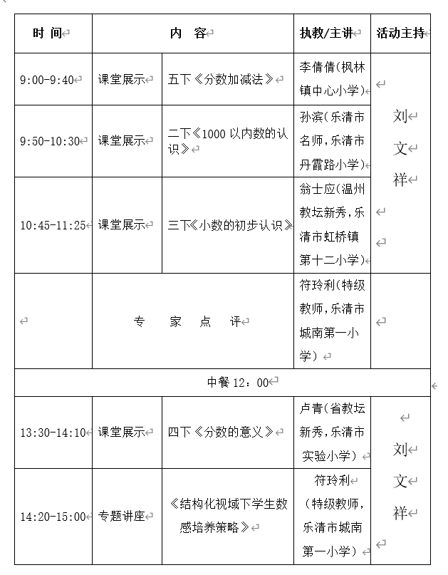 为了落实2022版小学数学新课标,深化小学课堂变革,提高课堂教学质量,促进教师专业成长。经研究,举行2023上半年永嘉县小学数学骨干班培训暨温州市符玲利名师工作室研修活动。