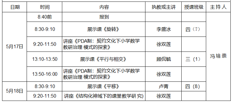 为促进教师更好地落实新课程标准的学习,本次活动以聚焦单元整体,落实核心素养为主题,从图形与运动角度展开研究,具体活动内容与时间安排如下: