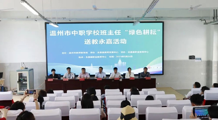 5月26日,林华名班主任工作室参加了由温州市教师教育院举办的2023年上半年温州市中职学校班主任“绿色耕耘”送教下乡活动,此次活动在永嘉县职业教育中心举行。温州市教师教育院综合研究室主任、温州市中职德育(班主任)师训员谢作俊,永嘉县教师发展中心正高级省特级教师、全国优秀班主任陈建仁出席;工作室主持人市名班主任林华携团队参加。为广大中职班主任带来一场班主任工作艺术的盛宴。