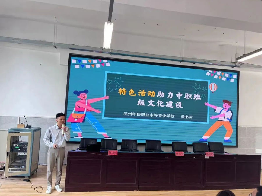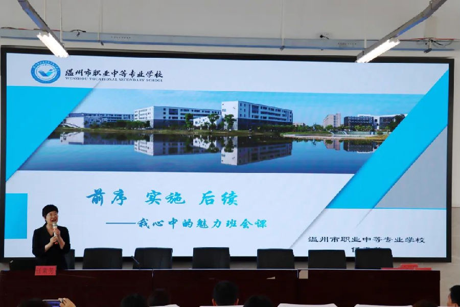 永嘉县第二职业中学钱旦旦老师作《教育无痕,工作留痕--做班级管理的有心人》,温州市瓯海职业中专集团学校金颖颖老师作《小项目,大活力--中职班主任职业指导工作的实践思考》,温州华侨职业中等专业学校黄书河老师作《特色活动助力中职班级文化建设》,永嘉县职业中学邵聪聪老师作《例谈带班育人方略》观点报告。他们通过一个个小故事和典型事例,各自分享了自己的带班理念和实践经验。