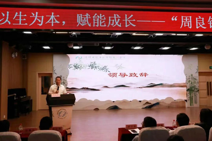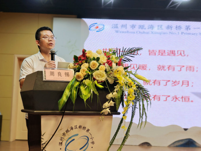 瓯海区教育局党员委员、教育研究院院长、特级教师陈加仓为活动致辞,高度赞扬了周良锡校长为人谦和、工作踏实,感谢新桥一小的全体教师默默奉献,努力工作,为瓯海的教育事业作出巨大的贡献。同时他也提出了三点要求:希望进一步明确教育目标,培养新时代优秀人才;希望建立高质量育人体系,遵纪守法,诚信友善;希望与时代同频共振,时代风云变化,科技日新月异,育人要与时代接轨,与时俱进,为党育人,为国育才。
