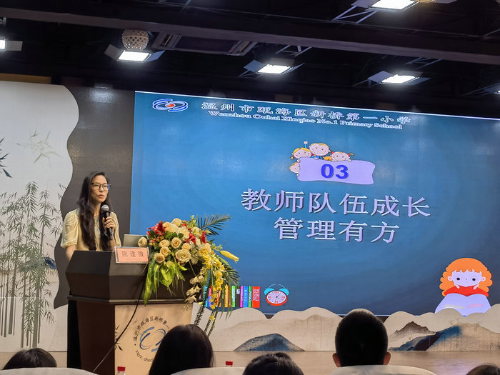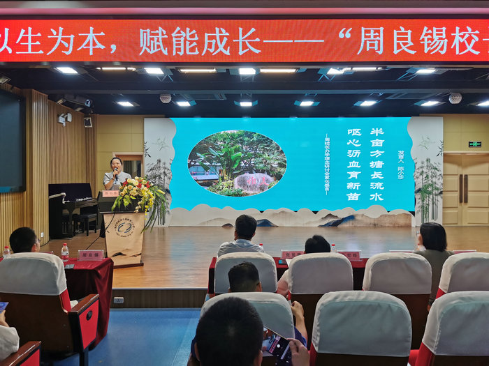 温州市外国语小学校长、温州市名校长吴闪燕表示,周良锡校长“以生为本,赋能成长”的办学理念与时俱进,以学生为中心,学校发展始终站在学生角度,为学生赋能。她由衷地赞叹:这是一所有故事的学校,这里有一个会讲故事的校长;这是一所有温度的学校,这里有一个温暖的校长;这是一所有美感的学校,这里有一个帅气的校长。