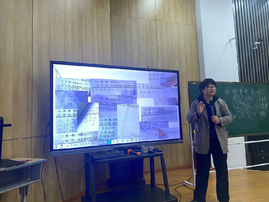 三节课后,工作室导师特级教师乐清市城南小学符玲利老师作点评与总结性发言。符老师充分肯定了三位示范教师课堂的亮点,并且也提供了老师们未来继续可以改进教学的方向,并对所有老师们做了基本功和教师专业成长的专题讲座,符老师希望老师们在基本功方面能善于举例、善于提问、善于优化,在问题引领中关注是否真正做到了深度教学,多提一些驱动型问题,让学生主动进行问题驱动下的学习,为学生能更好的建构数学概念,设置更多的障碍,帮助学生取得更大更好的成长。