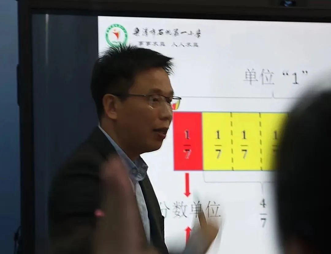 第一节是由孔庆攀老师执教的五年级下册《分数的意义》。孔老师从学生对分数已有的认知出发,从一个图形、一条线段、一个物体的1/4,再到一些图形、一个整体的1/4,学生经历了探索不同整体数量的1/4的过程。开放的学习材料,为课堂生成提供了许多有意义的教学素材,给深入感悟单位“1”的含义打下了基础。课堂上,学生在充分理解的基础上概括出分数的意义,并且了解了神奇的埃及分数,让课堂变得更有趣味性。