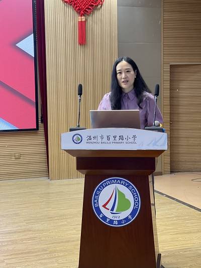 授牌仪式结束后,有幸邀请到温州市名教师、龙湾实验集团学校的王洁副校长为工作室学员们带来《行走在变也不变之间》的讲座分享。王校长从自身成长的一点一滴,向学员们展现了在成长历程里不断追求变的过程,也在变化的过程里保持不变的初心,让学员们真切的感受到思考的力量。