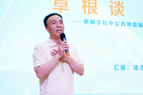 上午,温州外国语小学副校长汤志亮带来题为《草根谈——聊聊学校中层的效能辐射》的成长分享,讲述自己从“农夫”到“渔夫”、从公办到民办,一路成长一路精彩的教育教学历程,充分诠释了孺子牛精神。他说,要时刻为同事撑伞,身先垂范,凝聚人心,才能带着合伙人和学校共成长,彰显校长管理的魅力。他提出,中层应具备五“善”,即:在忠,善执行;在爱,善激励;在融,善沟通;在让,善示弱;在干,善抗住,以及有亲和力、有接受力、有心引力、有向上力、有喜感力等五“有”品质。