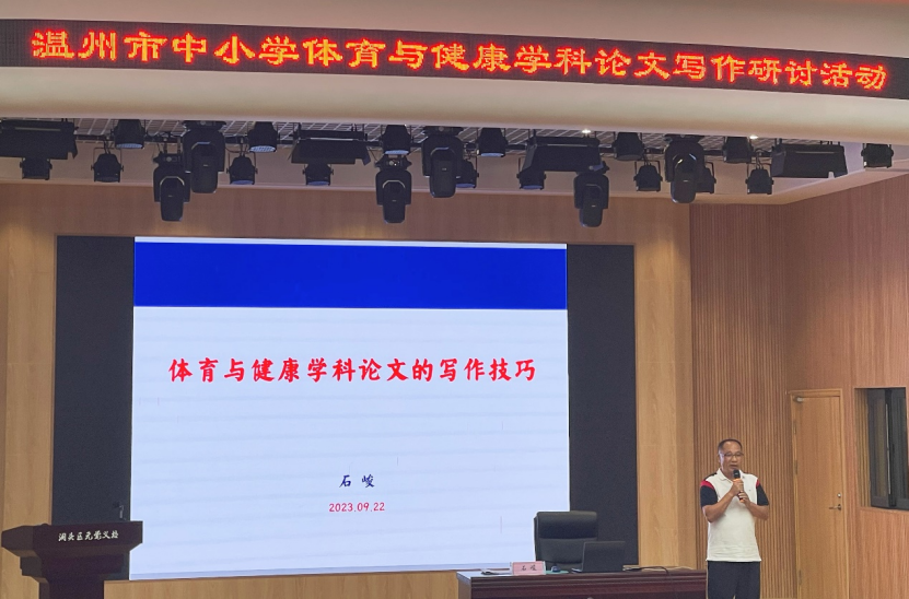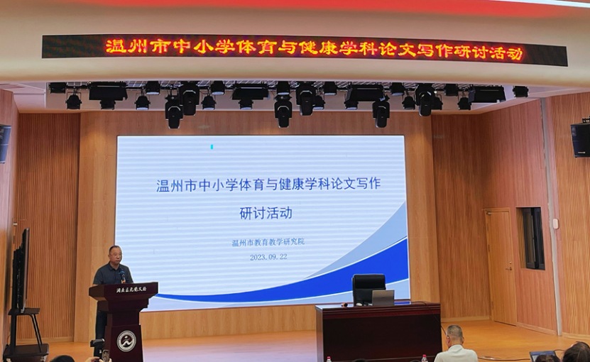 “教而不研则浅,研而不教则空。”对一名教师来说,辛勒耕耘是前行的主干道,潜心科研则是教师长足发展的助推器。为了进一步提升我市中小学体育教师的教育教学论文写作水平,促进教师专业发展,2023年9月22日-23日,“温州市中小学体育与健康学科论文写作研讨活动——暨温州市石峻“名师送教”工作室第二次活动在洞头区元觉义务教育学校如期举行。浙江省中小学体育教研员余立峰老师、温州市体育教研员蔡景台老师、浙江省特级教师石峻老师及工作室成员等一百余人参与了此次活动。