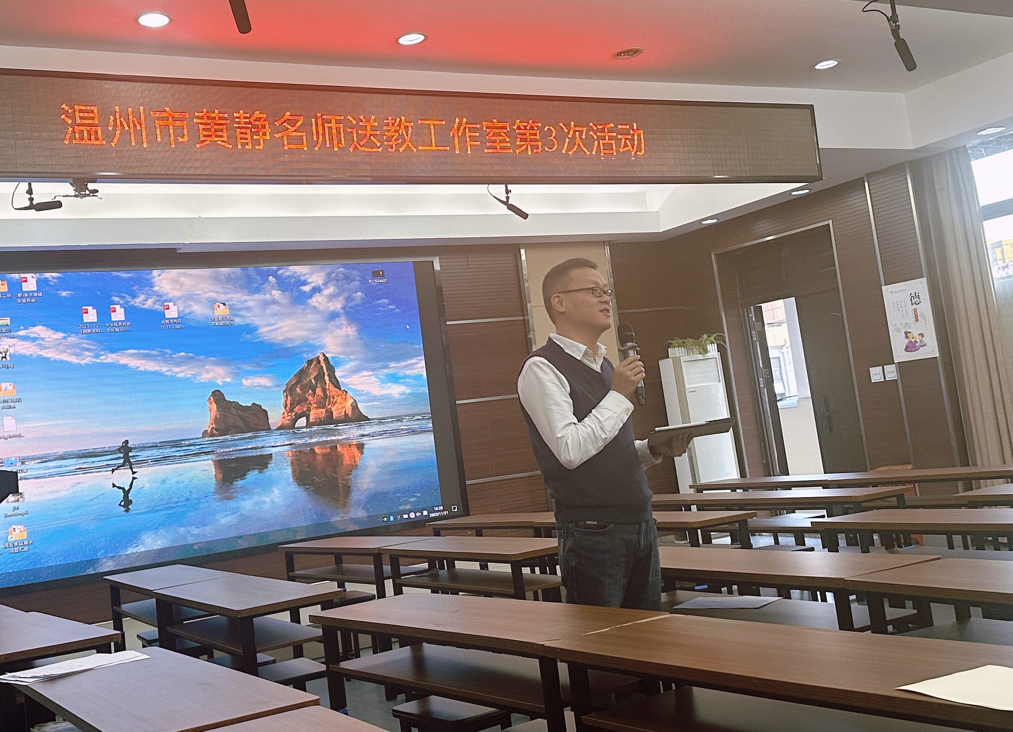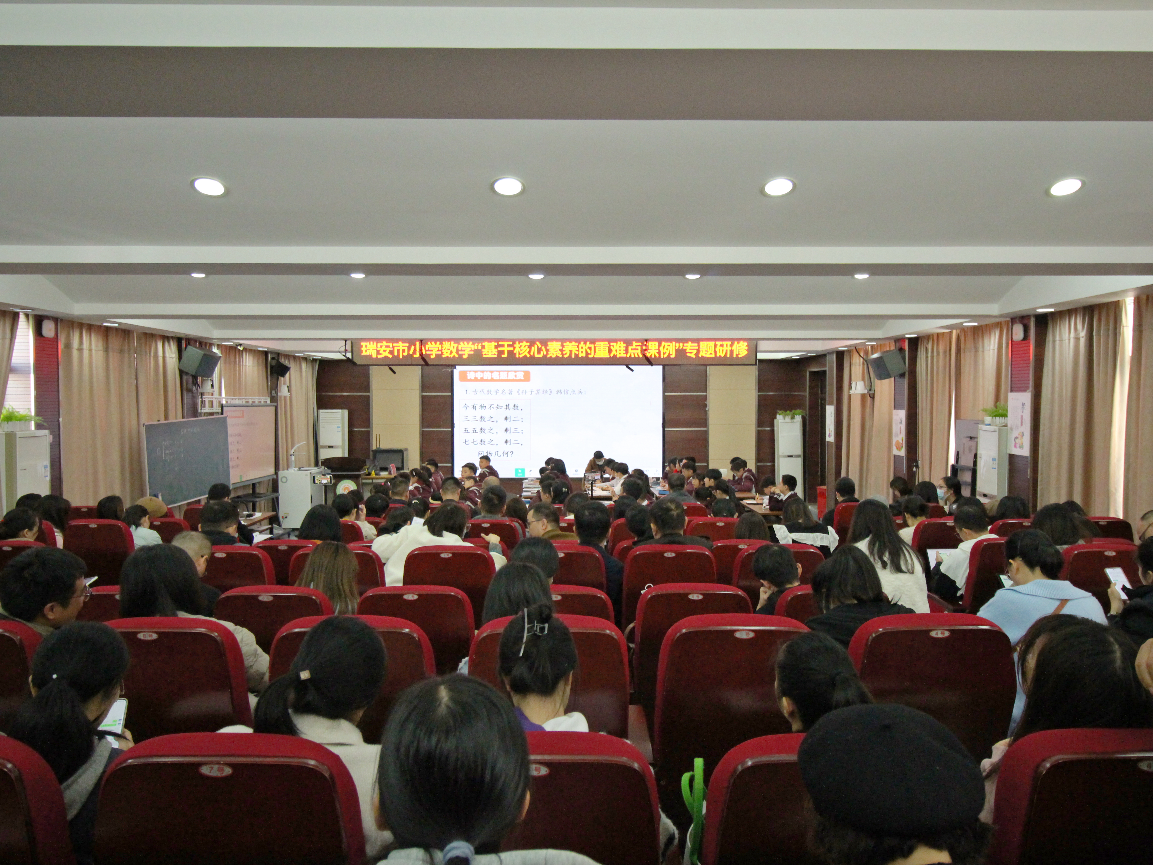 晓冬初至,天微寒。教研送暖,抚人心。为进一步落实新课标要求,发展学生核心素养,发挥名师辐射作用,11月21日,教育部新时代名师名校长计划陈加仓名校长工作室学员、温州市陈加仓名师工作室学员、温州市黄静名师送教工作室学员、瑞安市小学数学90学时培训班学员齐聚瑞安市安阳实验小学,开展瑞安市小学数学“基于核心素养的重难点课例”专题研修活动。莅临指导的专家有陈加仓特级教师、黄静特级教师、郑建锋特级教师、《教学月刊》编辑 王永锋老师、金文钦老师和单秀华老师,本次活动吸引了其他各校众多数学老师观摩学习。(图1、2)