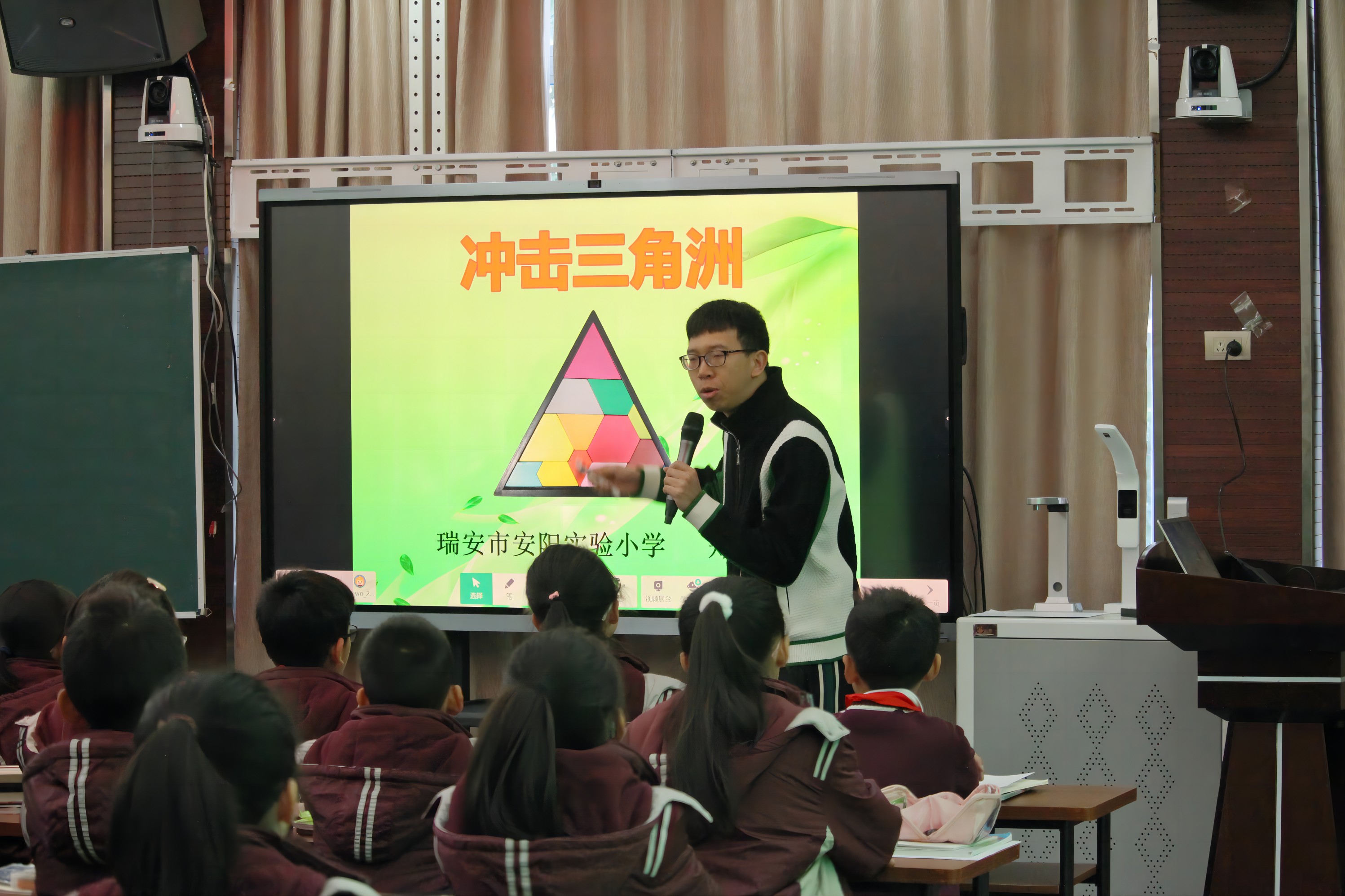 活动精彩纷呈,分为上午和下午两场。上午的活动以拓展课的形式呈现,分别由安阳实验小学郑津键老师课例展示《冲击三角洲》、瑞安市锦湖实验小学白雷老师课例展示《天干地支中的数学秘密》、温州市瓯江小学李婷玉老师课例展示《古诗词中的数学》,最后的压轴环节由陈加仓特级教师作专家引领点评。