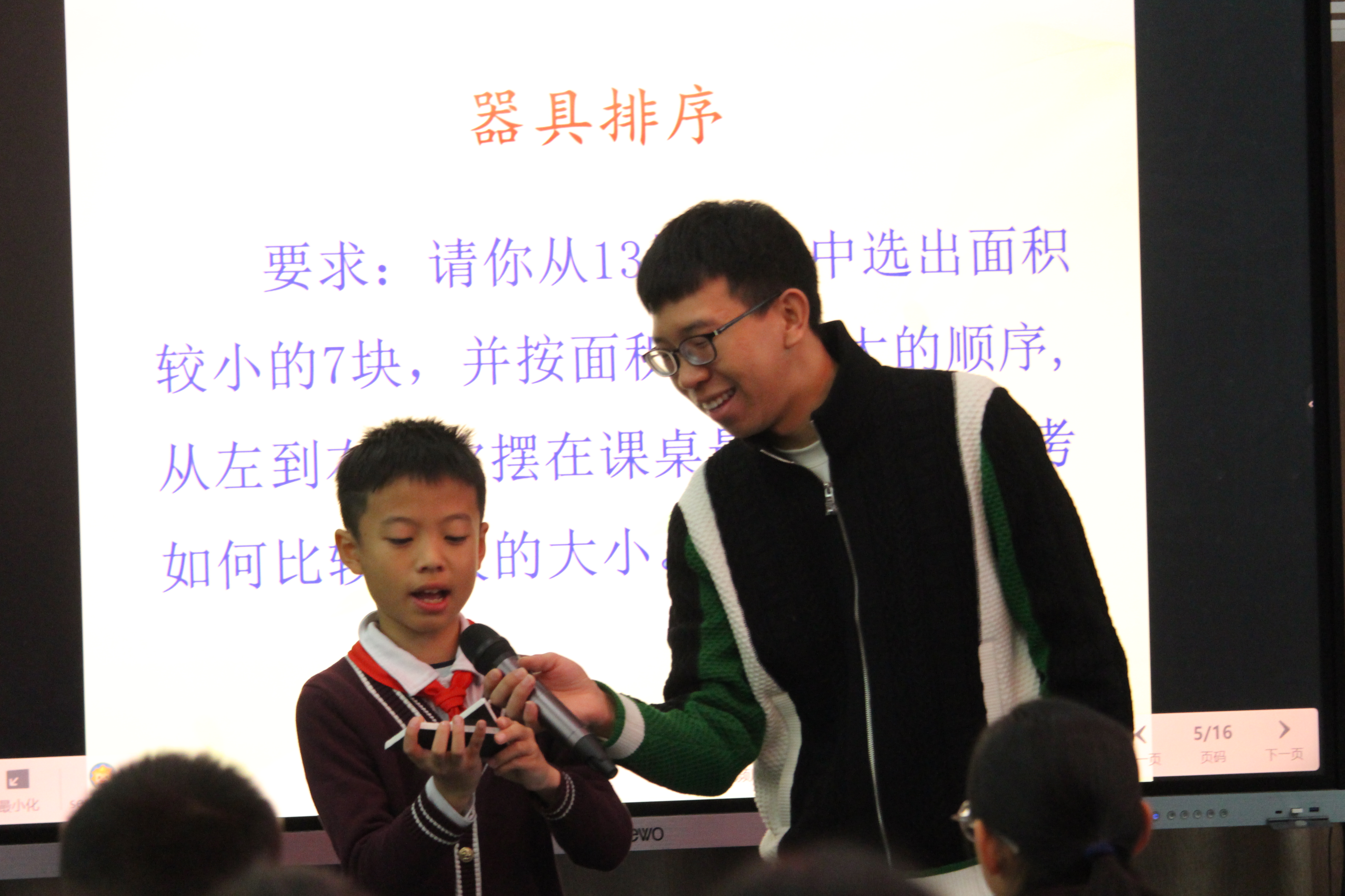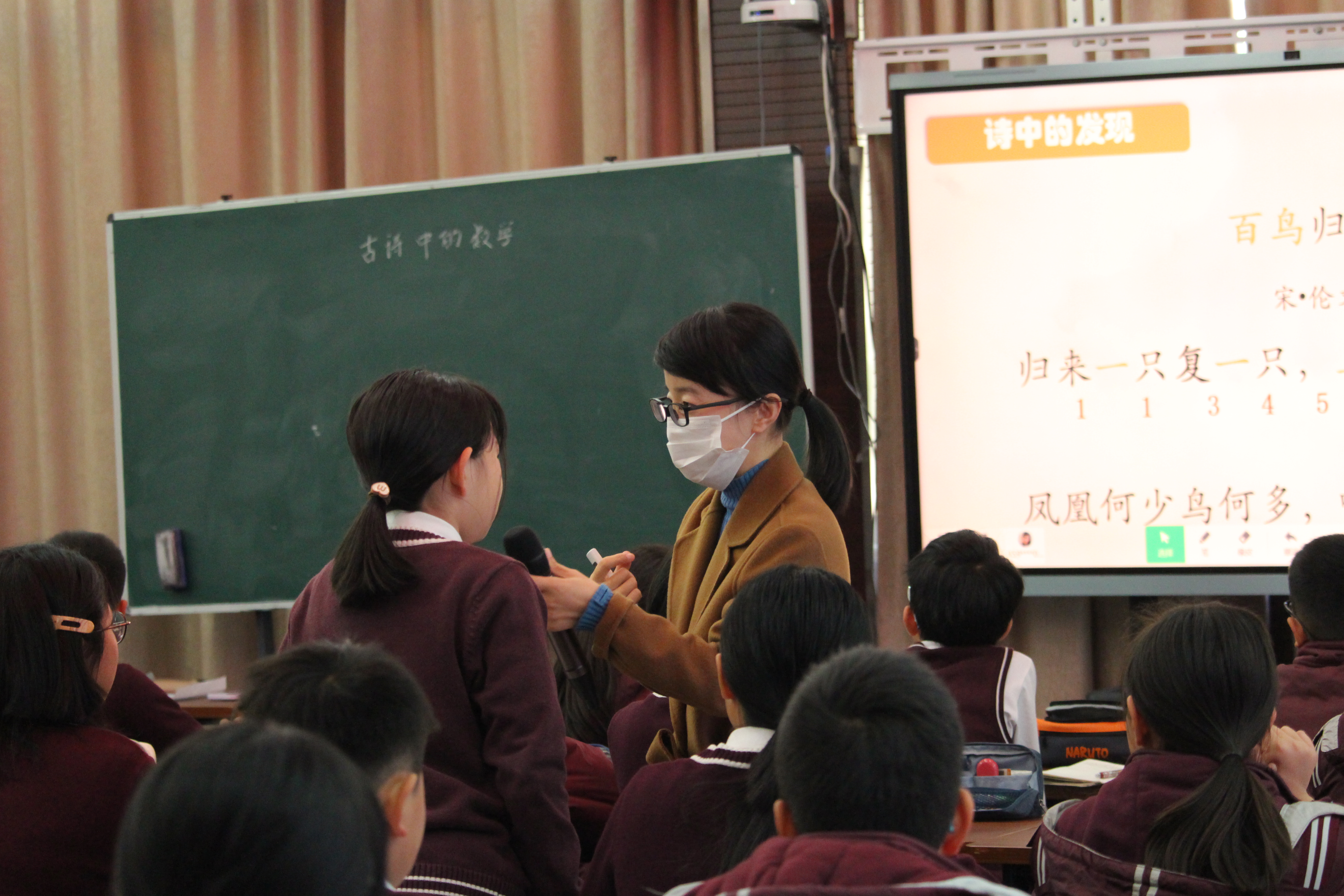 李婷玉老师引导学生从古代诗歌中发现数学信息,挖掘故事背后的数学本质。在古诗名题的赏析环节,学生充分挖掘数学元素,通过计算、观察、分析、比较、归纳等方式深刻感悟中国剩余定理,进一步体会中国数学史的博大精深。(图7、8)