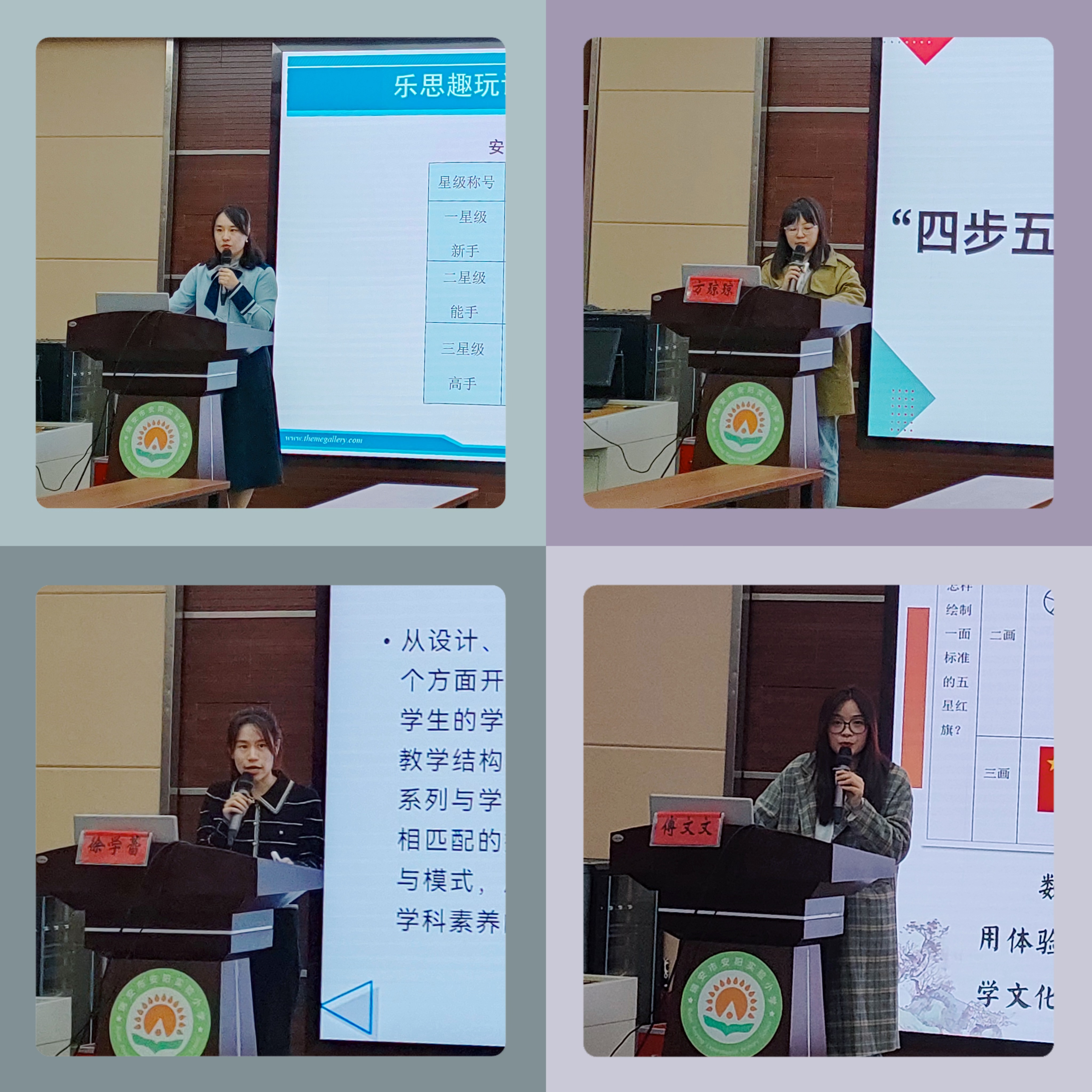 第二环节是由4位老师做观点报告。瑞安市安阳实验小学陈如如与大家分享了《多点突破 多措并举——探寻益智课程的有效路径》,她从大力推进校本课程研发,努力探索益智课堂教学,积极参与课堂教学变革三个方面展开阐述;来自龙港市姜立夫小学的方琼琼分享的主题是《小学数学拓展课“四步五拓”教学模式建构与实施》,她从提炼拓展课的学习内容开发策略和构建拓展课的课堂教学实施模式等方面做了详细介绍;温州大学城附属学校徐学蕾的观点报告题目是《小学数学拓展课:指向学科素养发展的差异化学习》,她从学科素养展开分析,与大家分享如何进行学本化拓学设计、素养化拓学实施等做法;乐清市芙蓉镇第二小学傅文文老师分享的内容是《中华优秀传统文化融入小学数学拓展课的教学思考》,她提出了“拓”数学传统文化育人实施研究策略,即三维开发、三度融合和三线推广。(图15)