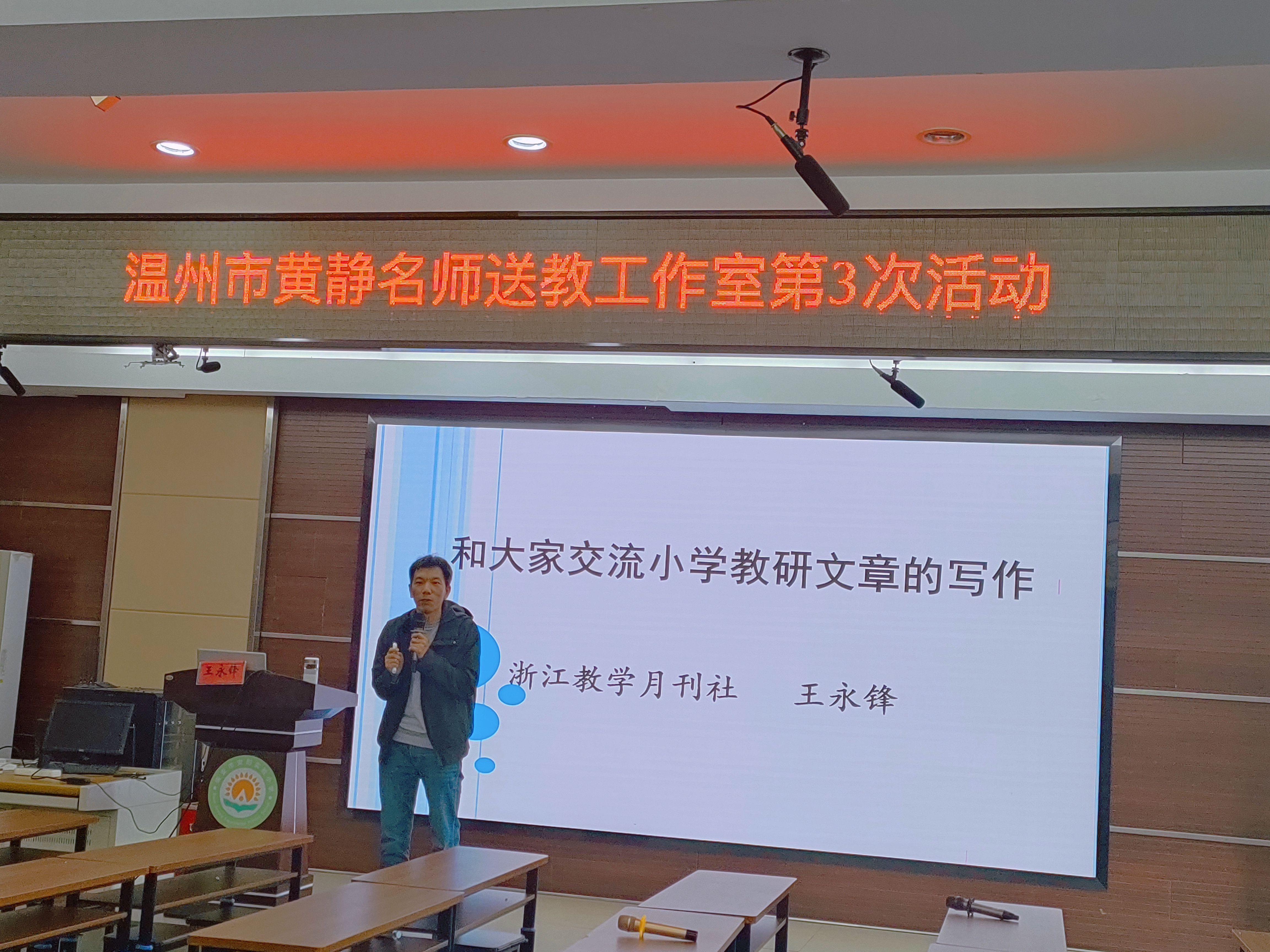第三环节,来自《教学月刊》的王永锋编辑作题为《和大家交流小学教研文章的写作》讲座。王老师认为写论文做研究,心态一定要平和。只有不想做,没有做不好。他指出老师要有问题意识,把研究问题说明白。研究问题包括研究主题、研究视角和研究内容,要做好提炼与优化。他还从杂志社编辑的角度与大家分享如何把一节课例写成论文,怎样的文章有发表价值,如何投稿等。最后,王老师还给大家提了宝贵的建议:要注意文章的呈现方式,要读一定量的相关文献,要进行本原的思考……(图16、17)