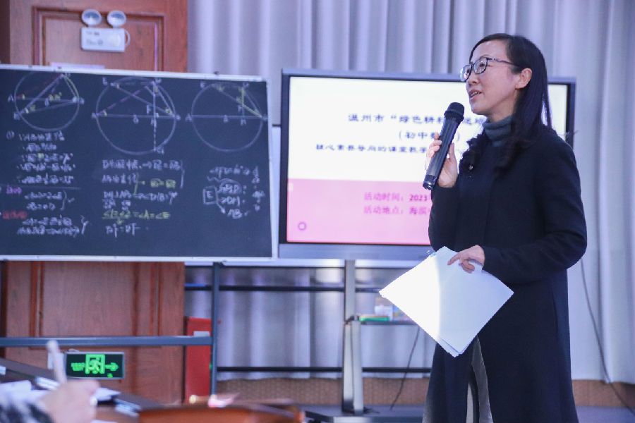 2023年12月7日,大雪至,冬寒语暖。温州市初中数学“绿色耕耘”送培暨郑银凤“名师送教”工作室第3次活动在海滨中学举行。龙湾区九年级数学教师、教研组长、备课组长、五年内新教师、温州市张合远名师工作室、温州市郑银凤“名师送教”工作室、温州市钱宜锋名师工作室学员参与本次送培活动。