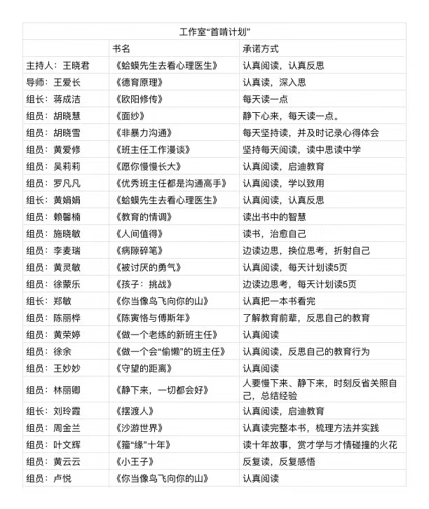 “爱阅读”,应是每个人的习惯。温州市王晓君“名师送教”工作室的学员们在王老师的带领下,确定阅读书目,计划用40天精读一本书,开展阅读,形成阅读成果。