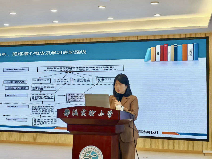 问渠哪得清如许,为有源头活水来。关于如何进行单元整体教学,如何把单元整体教学落到实处,温州市未来小学集团校长、正高级教师、特级教师季迅群为我们进行专业引领。季特为我们细致解读了2022版数学课程标准,她指出数学课堂教学要以数学核心素养为目标,课程设计要体现结构化特征,课堂中要寻找数学的核心概念,并以此展开有效教学。最后季特给大家做“依托结构化内容,促进单元整体教学”的专题讲座,引领我们学习结构化教学。从圆的认识、圆的周长、圆的面积、圆与方等课例向我们娓娓道来,从大单元的角度重构课堂,并通过不同版本的教材比对,让我们寻求到更适合学生的学习活动和教学设计。季特指出:我们的教学,我们的公开课,创新并不是最重要,最重要的是知道我们的孩子在哪里?以孩子为中心,寻找适合孩子设计和活动!