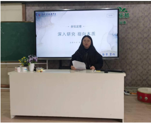 本次公开课的课题是《余弦定理》新课,采取同课异构的形式,分别由龙港二高的包小素老师和国科大附属高中的邵杭蕾老师展示。两位老师均采用情境问题引入的方式,激起学生的学习兴趣,转而将实际问题抽象成数学模型,进而探究求解。包老师侧重于余弦定理的推导,通过“问题链”的形式,以问题为明线,以学生核心素养的提升为暗线,展开新课教学;而邵老师的课各个环节的时间分配更为均匀,有余弦定理的推导,公式的正用逆用,问题设置更有层次感,学生积极参与课堂,踊跃分享自己的想法,真正体现了“以学生为中心”“学生是学习的主人”的新课程理念,给听课的老师们留下了深刻印象。