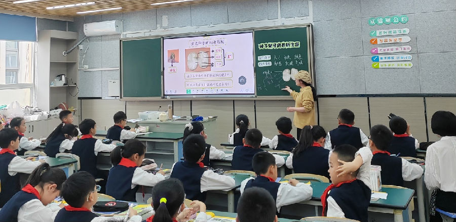 紧接着,两节精彩纷呈的研讨课拉开帷幕。平阳县昆阳镇第二小学的钟彬荃老师带来的《种子里孕育着新生命》一课,通过生动的实验和有趣的互动,让孩子们感受到了生命的奇妙与伟大。钟老师以生动有趣的方式,引导学生们观察了不同植物的种子,通过观察种子的外部形态和内部结构,使学生们认识到种子外部形态多种多样,但内部结构基本相同,从而进一步感受生物的多样性,构建多样性与共同性相统一的认知。钟老师的课堂充满了活力和趣味性,学生们积极参与,热情高涨。在观察种子的过程中,学生们不仅学到了科学知识,更培养了他们的观察力和实验能力,充分体现了活动的主题——聚焦学生核心素养,打造优质高效课堂。