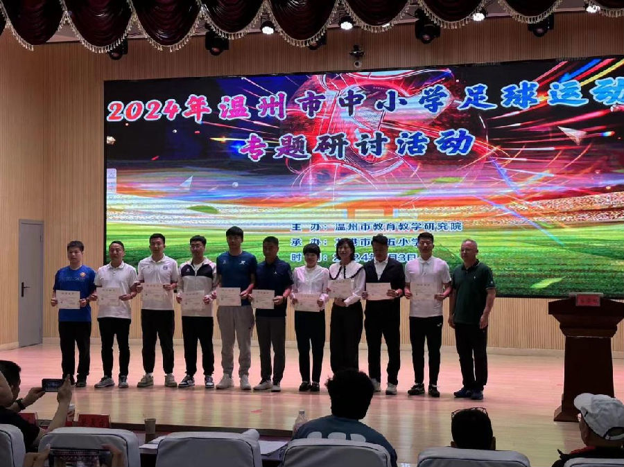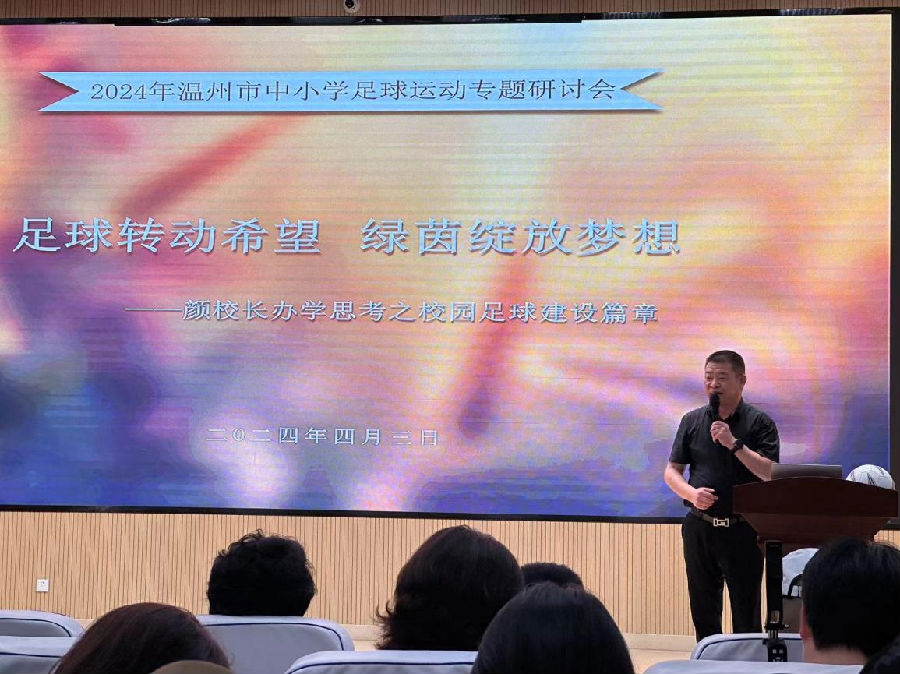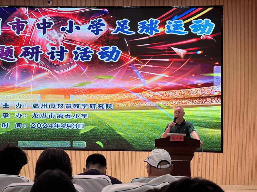 为了落实体育与健康课程标准,推进校园足球运动的发展,促进中小学体育老师课堂转型,提高体育课堂教学效能。2024年4月3日,“温州市中小学足球运动专题研讨活动”在龙港第五小学、龙港市职业中等专业学校举行,温州市曾荣“名师送教”工作室全体学员参加本次活动。本次活动上午在龙港职业中等专业学校进行,内容主要为大课间观摩、课堂展示、评课研讨等。下午在龙港第五小学进行,内容主要为开幕式、说课展示、各优秀学校经验分享、专题讲座等。