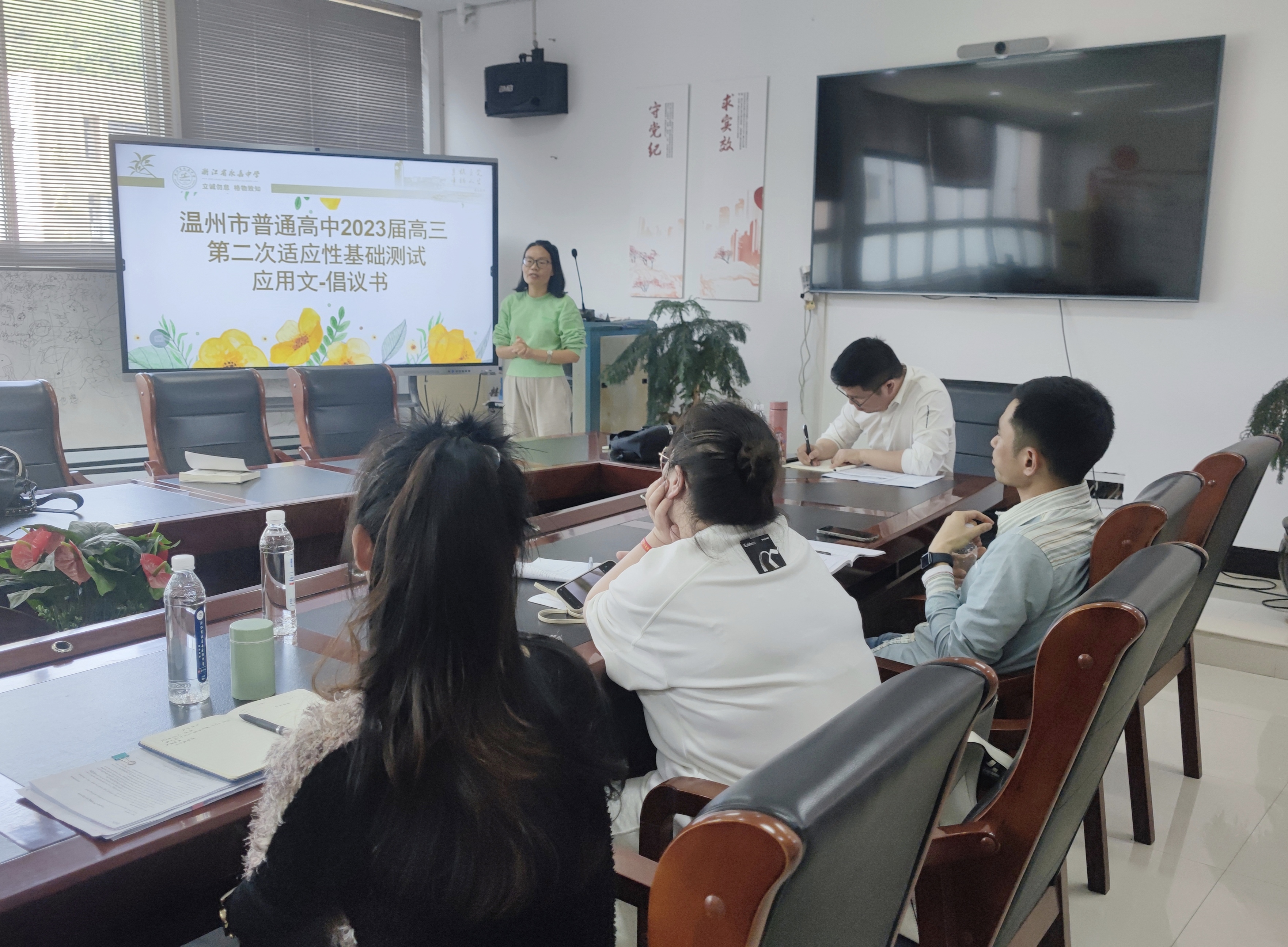 永嘉中学黄玉荣老师分享了永嘉中学2023届英语备课组的应用文集体备课的思路和策略。首先,她对近5年全国I卷应用文的试题进行了整理和归类,总结了试题命题的趋势:应用文命题紧紧依托高考评价体系,贯彻“一核四层四翼”的总体要求,贴近生活,选材丰富,类型多样,时代性强,内容趋于灵活和开放。紧接着,黄老师又以2023年的温州二模应用文试题为例,阐述他们是如何引导学生对应用文进行结构和语言方面的剖析和整理以及课后的巩固。黄老师的讲座内容丰富,层次分明,结构清晰,语言通俗,让在座的老师受益颇多,对应用文的二轮复习有了更明确的方向性。