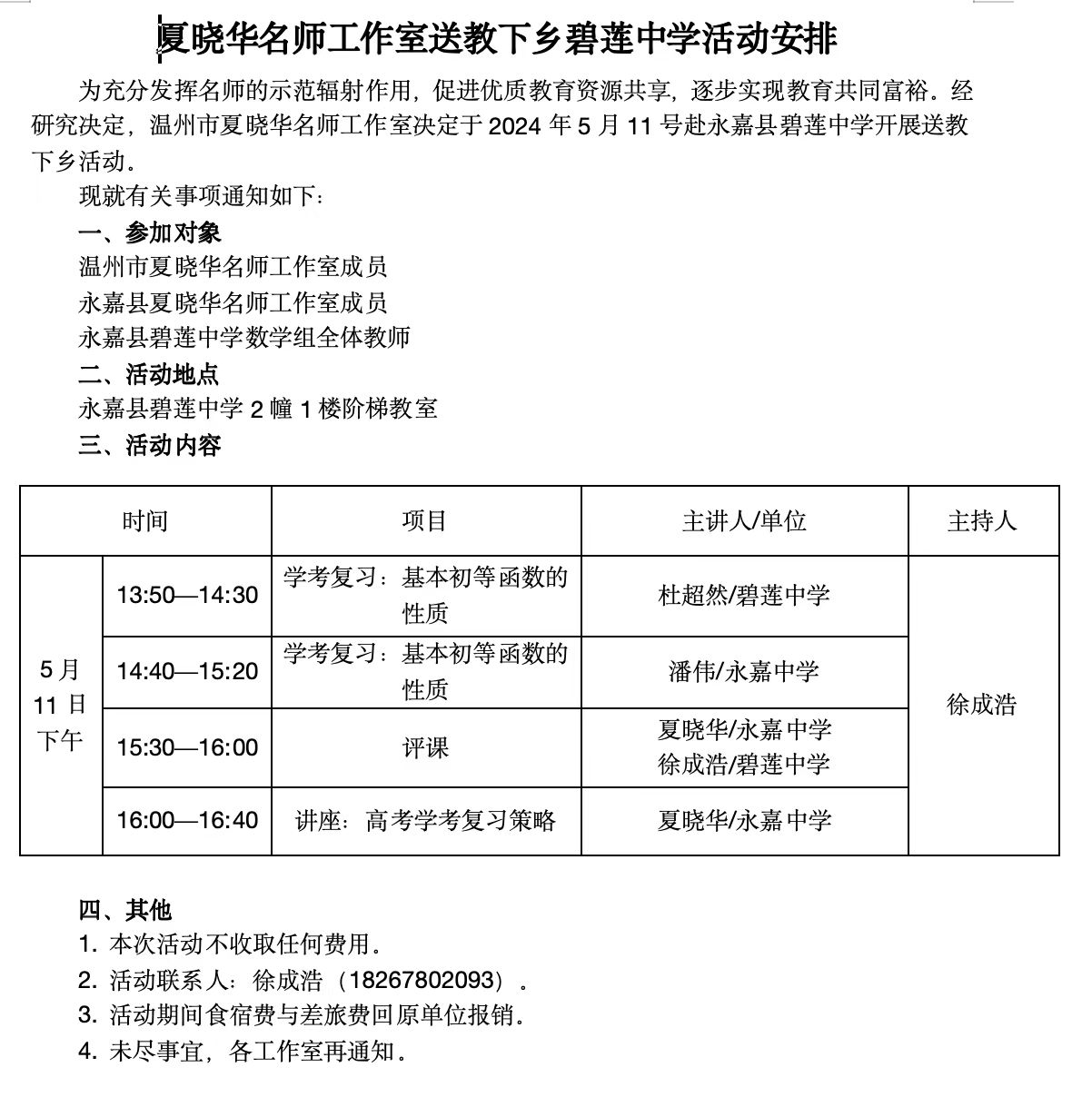 关于举行夏晓华名师工作室第12次活动的通知