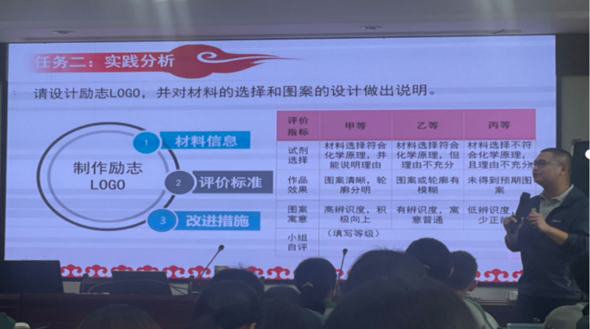工作室成员、来自乐清市城南中学卢建挺老师以制作励志LOGO为载体,最后回归到2023年温州中考实验探究题。