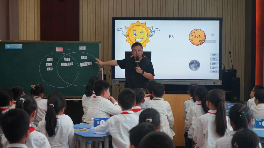 在潘挺挺老师的《仰望星空》课上,“做中思”教学理念得以充分展现。学生通过查阅资料、模拟实验与数据推理,深化了对天体知识的理解。潘老师巧妙地将学生的好奇心转化为学习动力,通过模拟实验让学生直观学习星体知识,理解天体间的距离关系。常规课堂可借鉴此法,设计探索性实验,鼓励学生动手实践、自主查阅资料并开展小组讨论,以此激发学生的探索欲,使科学学习变得更有趣且富有挑战。