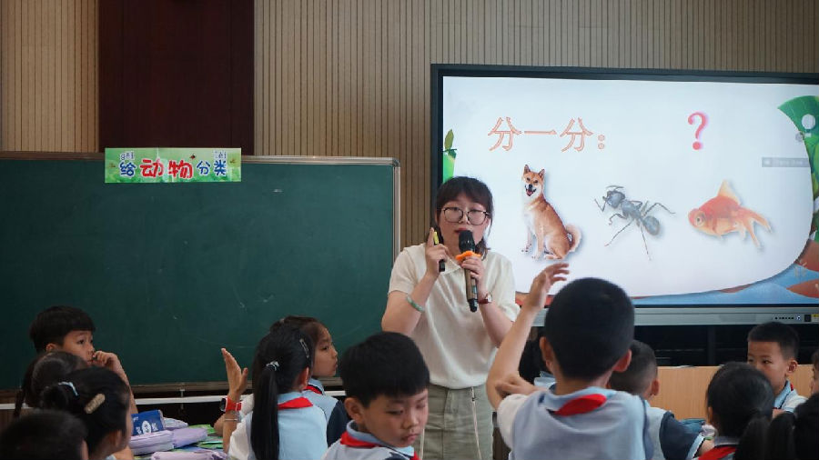 随后,温州市广场路小学的林青松老师以《给动物分类》为题,带领孩子们在活动中体验分类的乐趣,感受到动物的多种多样,也锻炼了他们的分类与逻辑思维能力。