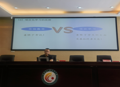 最后,温州市教育教学研究院黄鹏飞老师给我们带来了《初中科学学科项目化学习的几个关键点》的讲座,他首先向我们阐述了什么是项目化学习(PBL),即围绕一个具体的学科概念的建构和运用来展开,以其为主线,通过问题吸动,以整合知识、方法与能力。黄老师以新课标书后的教学案例《制作液体密度计》为例,向我们分享了科学项目化学习的几个关键点,一是学习目标应体现素养立意,指向学习目标;二是驱动性问题设计应具有挑战性,力求真实有趣;三是问题的解决过程应符合逻辑,尊重问题解决的逻辑。