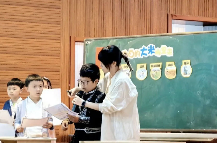 来自道尔顿小学的林楚楚老师带来四下《白白的大米哪里来》第一课时。林老师由谈话引入,让学生初步感知大米与我们的生活密不可分,且作用大。紧接着,林老师通过让孩子排一排大米种植过程,出示辛苦等级,激发孩子探究粮食种植的兴趣。通过小组合作,借助学习单对每项种植过程进行深入探究,感知种植不易,二次修改辛苦等级。然后,林老师在此基础上通过让孩子观看现代科技下种植方式变化,超级水稻背后的人与事的视频,进行思维碰撞,三次修改辛苦等级,明晰从古至今种植粮食都是不易的事。最后,林老师通过大米家族的烦恼情景,让孩子将所知落到所行,学会在生活中珍惜粮食,尊重劳作者,并发起尊重粮食的倡议。