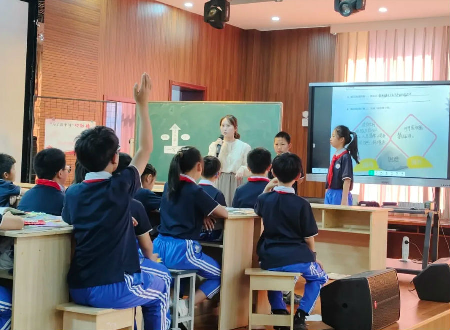 龙湾区少艺校的陈思佳老师执教五下《自力更生,扬眉吐气》一课,创设“中国工业博物馆”的教学情境,采用探究式研学活动,交流分享中国石油、青藏川藏公路、国防科技等方面的成就,层层深入,探究我国屹立在世界东方的原因。在交流碰撞中,学生认识到要传承发扬自力更生、艰苦奋斗的爱国精神,积极投身到中华民族伟大复兴的事业之中。