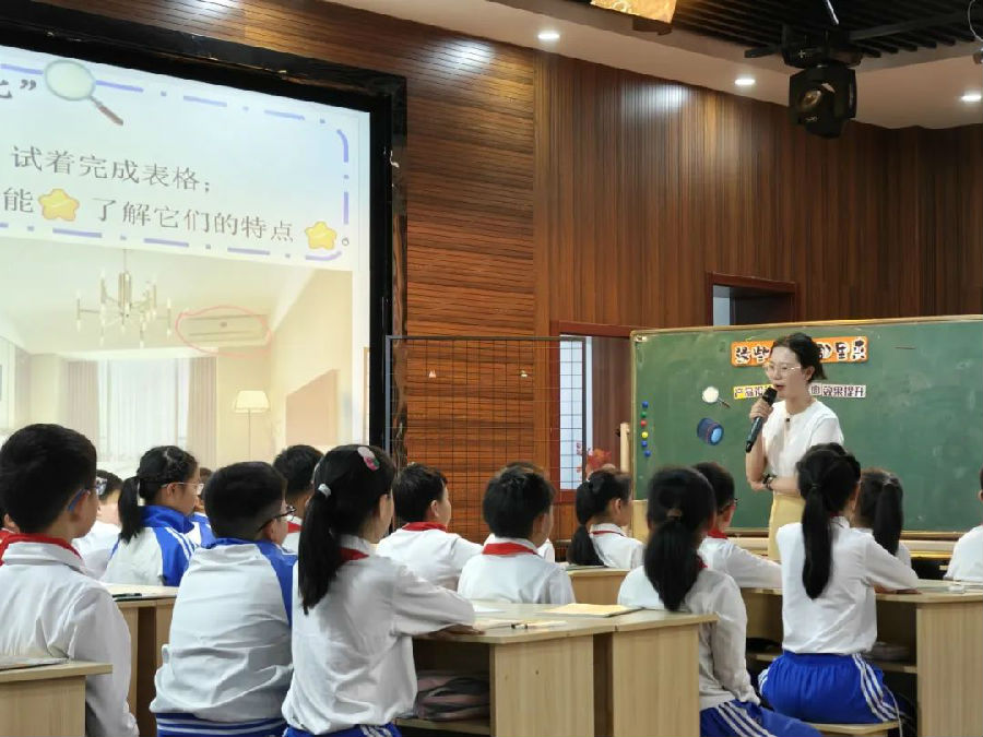 永中一小的蔡洋洋老师在《这些东西哪里来》中,设置了侦探队的探案之旅这一情境,用上放大镜、聚焦镜、望远镜三大法宝串联课堂首尾,在有梯度的学习活动中,学生认识了生活中不常见的老物件,通过比较、现场体验等方式感知随着工业发展新物品给我们带来的舒适和方便,还能眺望未来,设计改善现在的物品,精彩纷呈,活力无限。