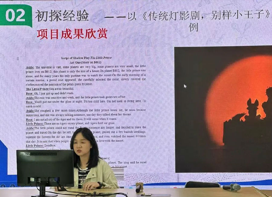 陈晓平老师以“案例撰写初探”为题,分享了自己作为教科研新手的探索经历。她结合《传统灯影戏,别样小王子》的项目化作业设计案例,探讨了如何从项目成果反推任务框架、如何运用图文并茂的方式呈现研究成果以及版面调整对作品质量的影响。陈老师总结道,教科研工作是一个不断学习和实践的过程,作为教科研小白,她仍需不断积累经验和突破自我。