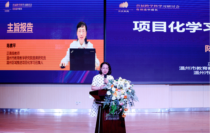 温州市教育研究院首席研究员陈素平老师的《项目化学习的温州实践》,向我们展示了项目化学习在温州全学段、全学科、全区域的丰富实践与成果。她强调了项目化学习设计的三个关键词:核心概念、过程设计和社会情感学习,特别是项目化学习的过程设计应涵盖科学探究、学习取向、工程设计和产品取向,以促进学生的全面发展。最后陈老师以“你就是我,我就是你,成长路上,与爱同行”作为结语,表达了对项目化学习在温州持续发展的坚定信念。