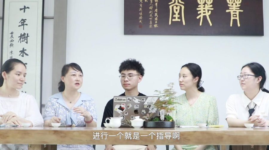 首先,五位老师分别从课堂管理、班主任工作、个别学生教育、学科具体教学方法等方面介绍了自己从教的经验。其中,周建晓老师回忆自己儿时在一个寒冷的冬天的期末考试之际,双手通红的自己,获得了来自班主任语文老师的温暖,于是在她心里播下了一颗教师的种子。在介绍过程中,她还传授了三招法宝。第一招——“玩”是制胜法宝。第二招——纸上谈“情”。第三招——家访。吴老师以自己的亲身经历,从教师专业和行政两个方面,讲述自己利用课余时间,提升自己专业成长的经验。谷茗老师以向前辈学习为契机,介绍了学校各科老师总会给他支招,倾囊相授,让她学习到很多。叶加根老师首先回顾了自己在双屿中学下乡支教的难忘时光。随后,叶主任谈到了自己在温州市少年美术学校担任一年级艺术教师时的转变与挑战。谈及他与孩子们一起在大自然中写生的过程,让他感受到了前所未有的教学乐趣和成就感。