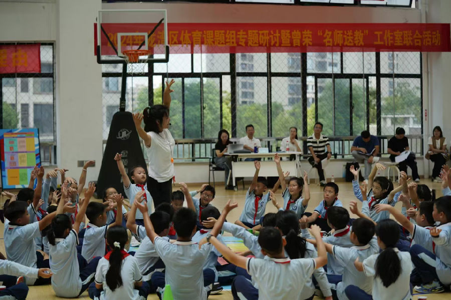 教和研是教学的双翼,是教师成长的关键。为更好地学习、领悟、贯彻《义务教育体育与健康课程标准》(2022年版)精神,进一步提高体育教师对教材的理解、把握和设计,温州市曾荣“名师送教” 工作室于2024年09月25日 在我校举行活动。
