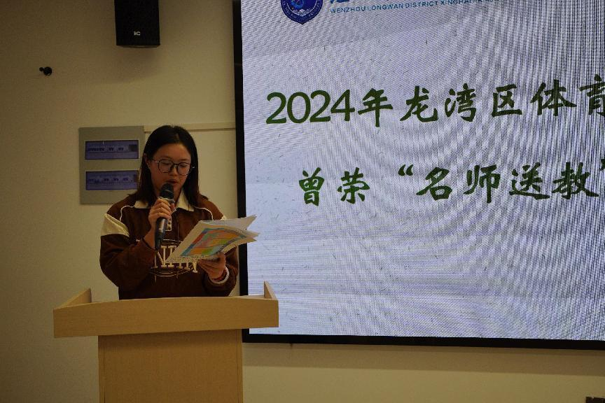 最后,龙湾区体育教研员曾荣老师给本次参与研讨和讲座的几位老师颁发奖状并对全体体育老师提出几点期望:展望未来,龙湾区骨干教师将以“四镜三圈五阶”的培养模式,继续发挥名师工作室的优势和特色,努力提升教育教学质量。接着曾荣老师提出对课堂教学提出新的要求,课堂要着重关注每节课的关键问题,从而达到教学目标的实现;其次每堂课的各类比赛环节要占基本部分的50%,从而提高学生的练习密度和强度。以上两点旨在进一步加强教育教学工作,不断探索新的教学方法和策略,同时,将更加注重培养教师的专业素养和教学能力,为教师的成长提供更多的机会和支持。
