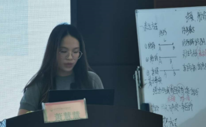 首先是浙江省特级教师、温州市实验中学南赛月老师同我们分享了说课的流程和说课中的关键要素,并且结合前面的三节课进行了点评。南老师提到,谢老师的诸多巧思,巧妙融入到课堂,提升学生的学习兴趣,同时对谢老师提出更高的期许。在说课的点评过程中,她强调说课需要详略得当,如果是针对课后说课,希望教师能够呈现学生出现的问题和自我的反思。最后,南老师对如何上好一节法则课提出了自己的思考,建议在法则课设计上是否也能和其余课型一样,为学生提供学习的基本流程,进行方法的统一和归纳。
