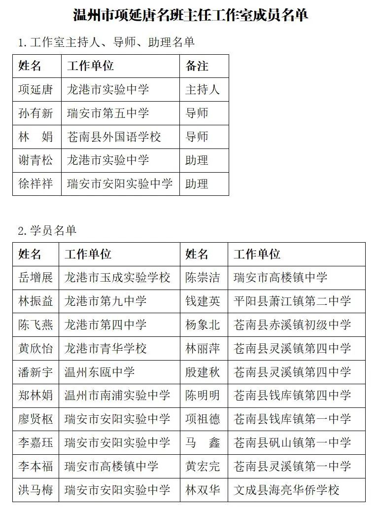 关于举行温州市项延唐初中名班主任工作室第32次活动的通知