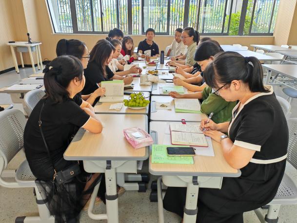 教师们按年级分成三组,分别由陈丽丹老师、单显达老师和何蓓蕾老师主持,大家围绕《教育的减法》一书,人人轮流发言,分享自己的读书心得和“减负提质”教学实践的经验,现场气氛热烈而富有成效。