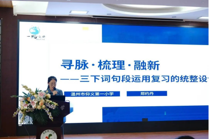 《寻脉 梳理 融新——三下词句段运用复习磨课思考》是郑约丹老师分享的主题。郑老师对课标和教材中的“词句段运用”进行了深度解读,制定了第一课时的教学目标,明确设计定位。“围绕学科概念,设置复习情境”、“紧扣教学目标,设计学习活动”、“借助评价量规,检验复习成果”,郑老师将看似零散的词句段运用板块复习与习题设计进行有机整合,巧设分项评价,赋能学生个体发展,增强学生主体意识。